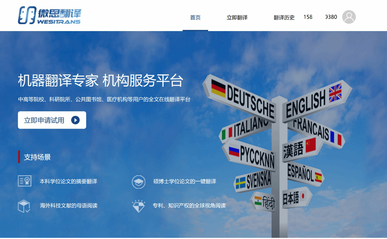 微思翻译,全称“微思自动翻译系统”,是采用最先进的机器翻译系统、神经网络算法,不仅仅将单词、语句等进行翻译,更进一步按照读者日常学习、阅读、使用的习惯,对多种类型的文档进行基于文档原始版面格式的全文在线翻译,以接近自然语言方式组织翻译的语言配对方向,以多种输入和输出格式满足用户日常对文件的管理需求,采用基于最新“神经机器”翻译技术的翻译引擎,提供190种语言之间的翻译服务。帮助用户查阅科学文献、技术文档,撰写和翻译各种外文资料,提升用户获取知识的效率。