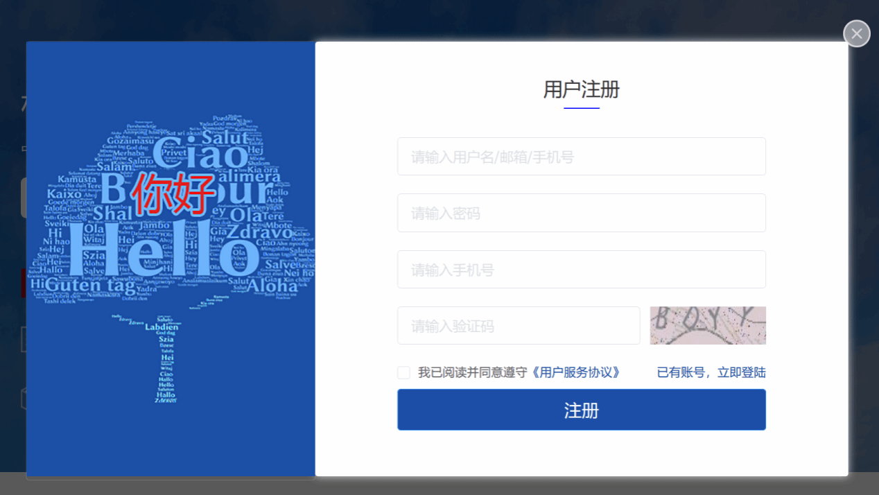 点击右上角头像处,弹出登陆窗口。点击“快捷注册”,进入注册页面,输入用户名、手机号、密码、验证码等信息,进行账号的注册。
