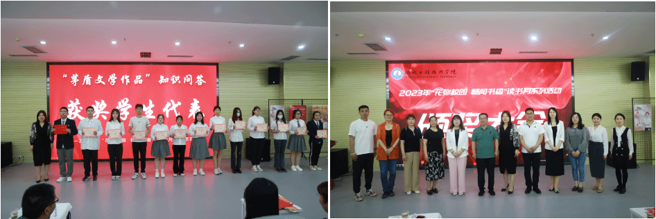 在颁奖环节,依次公布了本届读书月系列活动的获奖名单,参会领导与嘉宾先后为获“做一个博学而有趣的人”---21天打卡、“矛盾文学作品知识问答”、第二届“阅读达人”评选、“签动河工”原创书签设计大赛、“译路同行”知识问答、起点杯英语四六级真题实训打卡比赛、“我和图书馆的故事”摄影大赛奖项等获奖学生进行了颁奖,人工智能与大数据学院获得优秀组织奖。获奖学生代表发表感言,号召同学们积极参与活动,充分利用图书馆资源。